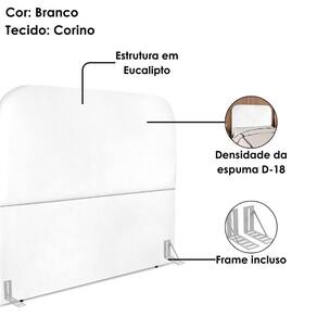 Cabeceira Casal Alana, moderna e aconchegante trazendo o design orgânico para seu quarto! Estrutura em Madeira de Eucalipto (reflorestada), estofada em espuma (densidade D-18) e revestida em tecido Corino (material sintético que lembra couro) com bordas curvas. Incluso Frame (metal resistente com reforço lateral e acabamento em pintura epóxi) para fixação em camas Box e sapatas plásticas. Este produto será entregue em 1 volume.