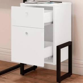 Possui 01 gaveta e 01 gavetão com corrediças metálicas e puxadores vazados.