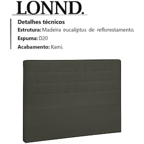 Cabeceira Casal 140 cm Lonnd Linho, perfeita para complementar sua cama e compor a decoração do seu quarto com muita elegância e luxuosidade. Estrutura em madeira de reflorestamento que oferece maior durabilidade ao produto. Composta por revestimento em tecido linho, conta com espuma D-20 de altíssima qualidade, acabamento em kami, e acompanha frames para facilitar a fixação no box, é ideal para box Casal de 140 cm. Possui design moderno que transmitira charme e versatilidade ao seu ambiente. Este móvel chegará na sua casa separado em 01 volume.