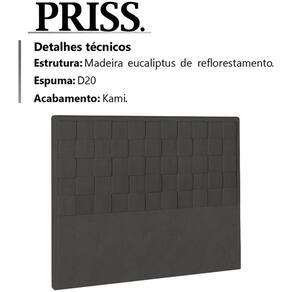 Cabeceira Casal 140 cm Priss Linho, perfeita para complementar sua cama e compor a decoração do seu quarto com muita elegância e luxuosidade. Estrutura em madeira de reflorestamento que oferece maior durabilidade ao produto. Composta por revestimento em tecido linho, conta com espuma D-20 de altíssima qualidade, acabamento em kami, e acompanha frames para facilitar a fixação no box, é ideal para box Casal de 140 cm. Possui design moderno que transmitira charme e versatilidade ao seu ambiente. Este móvel chegará na sua casa separado em 01 volume.