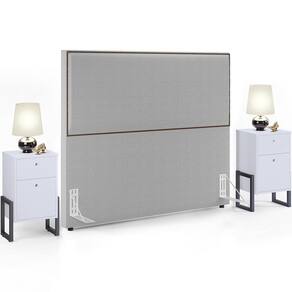A Cabeceira Casal Vicenza 140 cm Bouclê Cinza L02 Com 02 Mesas De Cabeceira Work Branco - Lyam Decor é o conjunto que vai trazer ainda mais elegância para o seu quarto! Todos os detalhes deste kit foram pensados para criar uma atmosfera de aconchego e tranquilidade para que os momentos de descanso sejam agradáveis e com máximo conforto.