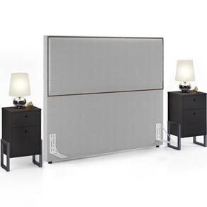 A Cabeceira Casal Vicenza 140 cm Bouclê Cinza L02 Com 02 Mesas De Cabeceira Work Preto - Lyam Decor é o conjunto que vai trazer ainda mais elegância para o seu quarto! Todos os detalhes deste kit foram pensados para criar uma atmosfera de aconchego e tranquilidade para que os momentos de descanso sejam agradáveis e com máximo conforto.