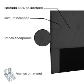 Cabeceira Casal 1,40m Aquilla Suede Preto - Preto