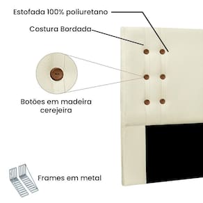 Apresentamos o modelo de cabeceira Genova que veio para completar o seu quarto. Visual moderno e sofisticado com o tamanho perfeito para você, produzida com materiais de primeira linha, com botões de madeira cerejeira e costuras bordadas matelasse fazem dela uma obra de arte no seu quarto.