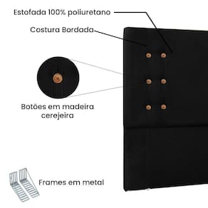 Cabeceira Casal 1,40m Genova Suede Preto - Preto