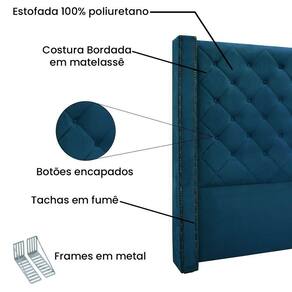 Cabeceira Casal 1,40m Vicenza Veludo - Pallazio Cor Azul Marinho