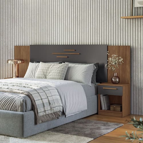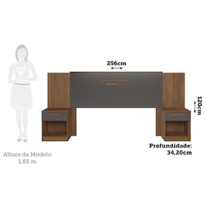 Cabeceira Casal 2 Gavetas 256cm Loanda Santos Andira - Marrom | Grafite