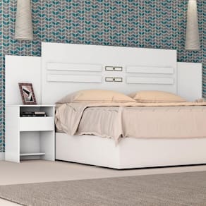 A Cabeceira Casal Triunfo combina conforto e funcionalidade, adaptando-se a camas Casal e Queen. Com mesas de cabeceira acopladas, oferece espaço extra para organizar itens essenciais, trazendo estilo e praticidade ao quarto.