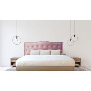 Cabeceira Casal Butonê em Veludo Rosê com Tachas Prata