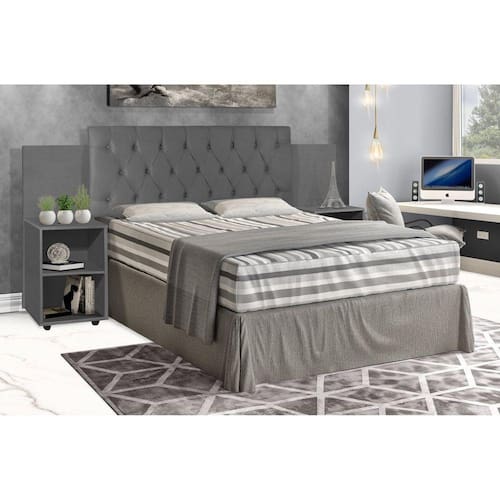 Cabeceira para Cama Box Classic Carmolar, 100% revestida com suede aveludado na cor cinza. Enchimento com espuma D-12, além de possuir 2 mesas de apoio e design moderno, é muito aconchegante e um produto diferenciado como nunca visto antes, seu diferencial destaca a elegância de qualquer ambiente deixando o seu quarto o lugar mais agradável da casa. Produto Montado: Sim Acabamento da Mesa de Cabeceira: Poliéster Acabamento dos Pés: Pintura Altura dos Pés: 4 cm Ambiente Principal: Quarto Cabeceira Estofada: Sim codigo_ean: 7909903357743 Complexidade da Montagem: Alta: deve ser montado por um montador especializado Cor: Cinza Cor do Produto: Cinza Cor Flex: Não Escala de Brilho: Semi-Fosco Escala de Brilho da Mesa de Cabeceira: Semi-Fosco Extensível: Sim Fixação Box: Não Fixação na Parede: Não Itens Inclusos: 1 Cabeceira, Kit Ferragens, Manual de Montagem. Largura Máxima: 241 cm Largura Mínima: 221 cm Linha ou Coleção: Quarto Manual de Montagem e Instalação: https://product-hub-prd.madeiramadeira.com.br/859368/documents/cc044d0e-17e9-4f86-9e13-b82919c1964fssicchocolate7908254000520.pdf Material da Mesa de Cabeceira: MDP Material dos Pés: Plástico Material Principal: MDP Montagem Flex: Sim Necessita Montagem: Sim Origem do Produto: Nacional Peso: 31 kg Possui Baú: Não Possui Mesa de Cabeceira: 02 Possui Pés: 08 Possui Rodízio: Não Possui Possui Vidro: Não Recomendações de Uso, Manutenção e Limpeza: Limpar com pano seco. Não usar produtos químicos ou abrasivos. Evitar batidas e objetos cortantes, manter em lugar livre de umidade, ao abrigo de exposição direta ao sol. Não encostar o móvel na parede para evitar transmissão de umidade. Sapatas Niveladoras: Não Sistema de Montagem: Parafusos e Cavilhas. Tipo de Colchão: Casal