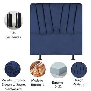 Cabeceira Casal Box De Cama Estofada 140 Cm Emma Veludo Cor:azul Marinho