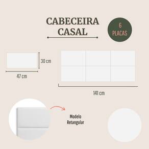 Tamanho Casal (6 placas): 141 cm (comprimento total) x 60cm (altura) x 3 cm (profundidade).