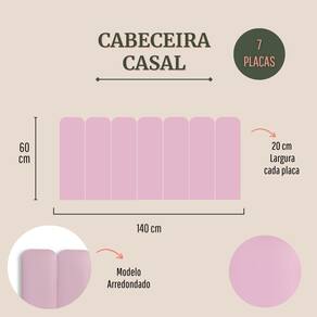 Tamanho Casal (7 placas): 140cm (comprimento total) x 60cm (altura) x 3 cm (profundidade).