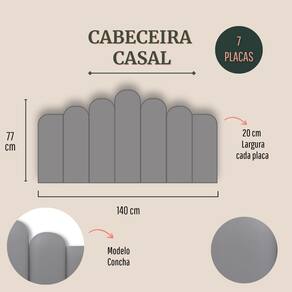 Cabeceira Casal Estofada Kit 7 Placas Concha - Courino Cinza