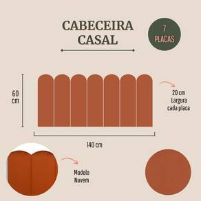 CONFIRA ABAIXO MAIS DETALHES SOBRE O PRODUTO: Tamanho Casal (7 placas): 140cm (comprimento total) x 60cm (altura) x 3 cm (profundidade). Altura de cada placa: 60 cm Largura de cada placa: 20cm Materiais: 100% MDF; Espuma; Fita 3M; Cores e Tecidos: temos 25 variações de cores e tecidos. Escolha a que você mais gosta.