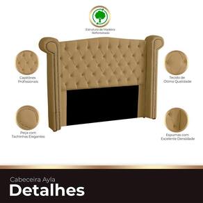 Cabeceira Casal Estofada Para Cama Box Ayla Veludo Bege Escuro
