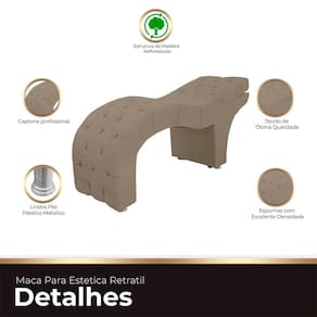 DIMENSÕES DA MACA Largura total:190cm; Profundidade total: 65cm; Altura fechado:0,90cm; Altura do encosto aberto:115cm; Peso suportado: 145kg. Peso:32kg;A GARANTIA É DE FÁBRICA