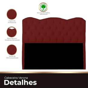 Cabeceira Casal Estofada Para Cama Box Verona Veludo Cor Marsala - Vinho