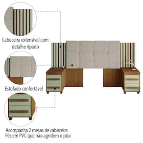 Transforme seu quarto com a Cabeceira Regulável Suíça! É a peça ideal para elevar o seu quarto a um novo patamar de estilo e funcionalidade. Com detalhe ripado e design moderno que se adapta a qualquer decoração, acomoda box de 1,38m, 1,58m, 1,93m e ainda conta com duas mesas de cabeceira, 4 gavetas e pés em PVC que não agridem o piso! Feita com materiais de qualidade garantindo maior durabilidade e resistência. MEDIDAS: A: 125 cm L: 229 cm P: 36 cm MEDIDAS MESA DE CABECEIRA: A: 59,2 cm L: 40 cm P: 36 cm MODELO: Cabeceira Regulável Para Cama Box Casal Suíça RV Móveis MARCA: RV Móveis COR: Cinamomo/Off White ACABAMENTO: Verniz Fosco ESTRUTURA: MDP/MDF GAVETAS: 4 CORREDIÇAS: Telescópicas GAVETAS SUPORTAM ATÉ: 5kg MATERIAL DOS PUXADORES: MDF PÉS: 4 MATERIAL DOS PÉS: Plástico ALTURA DOS PÉS: 7cm ADAPTÁVEL PARA BOX DE: 1,38m, 1,58m e 1,93m MATERIAL DO ESTOFADO: MDF/Espuma/Tecido DIFERENCIAL: Detalhe ripado PESO: 44,30kg GARANTIA: 3 meses pelo fabricante A Esplanada Móveis se responsabiliza pela entrega dos produtos adquiridos até a porta de entrada ou portaria do endereço indicado, se a portaria do condomínio permitir, as entregas são efetuadas no piso térreo e é de responsabilidade do cliente a locomoção da mercadoria até seu apartamento ou casa. Confira as dimensões do produto e certifique-se de que estão adequadas aos elevadores, portas e corredores do local da entrega. Não fazemos a montagem, desmontagem do produto e/ou portas e janelas, transporte pela escada ou içamento pelo lado de fora do prédio. Não está incluso no serviço de entrega o deslocamento até o interior do apartamento, com ou sem elevador, ou deslocamento em locais de difícil acesso como escadarias. Ean: 7899729733190