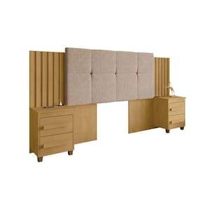 AS IMAGENS SÃO MERAMENTE ILUSTRATIVAS E PODEM SOFRER VARIAÇÕES DE COR E PEQUENOS DETALHES DE ACORDO COM O SEU MONITOR, ILUMINAÇÃO DO AMBIENTE E ATÉ MESMO A SUA PERCEPÇÃO VISUAL.Cabeceira Casal ExtensÃvel com 2 Mesas de Apoio Ripado SuiÃa Cinamomo