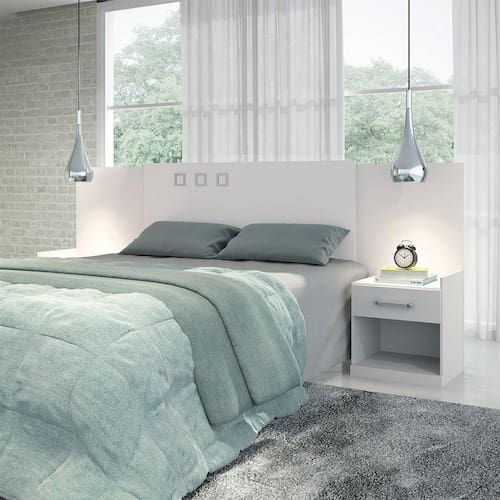 Cabeceira Casal Havana Plus com Mesa de Cabeceira Santos AndiráCaracterísticas:2 gavetas com corrediças metálicas, amplo espaço que deslizam suavemente sem enrosco.Estrutura em 15 e 12mm, design diferenciado e muita resistência.Medida para colchão Box 1,40 e 1,60m.Não é necessário parafusar na parede.Permite ser desmontado e montado até cinco vezes.Cabeceira Laterais ext Tampo Frentes de gaveta Prateleiras: MDP 15mm com aplicação.Traseiro de gaveta, Base inf: MDP 15mm com aplicação.Fundo da Mesa de Cabeceira: MDP 12mm Bordos: Acabamento Reto.Não Limpar com álcool ou qualquer produto químico.Utilize somente pano seco ou levemente umedecido.Dimensões:Altura: 104 cmLargura: 254 cmProfundidade: 39 cmPeso: 38,100 kgManutenção: Não limpar com álcool ou qualquer outro produto químico, utilize somente pano seco ou levemente umedecido.Garantia de Fábrica: 03 Meses (90 dias).