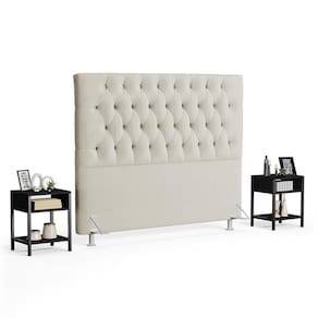 Hora de renovar o seu quarto, deixando mais moderno e prático e a Cabeceira Casal King 195cm Cristal Boucle Bege e 2 Mesas Laterais Plaza LC1 Preto, da Mpozenato é o Kit ideal para você!