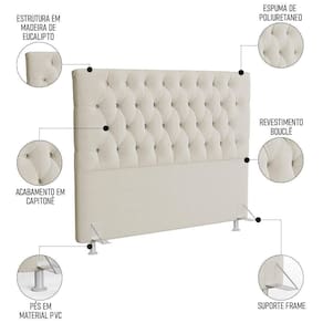 A Cabeceira Casal é uma ótima opção para quem busca conforto, beleza e qualidade. Ela é feita com madeira de Eucalipto, e possui um acabamento em espuma poliuretano e tecido Boucle de ótima qualidade e com detalhe em capitonê que vai deixar seu Quarto ainda mais elegante, acompanha dois pés em PVC, ideais para evitar o direto com o chão. A Cabeceira Painel tem um design moderno e sofisticado, com sistema de fixação prático e , que permite que você a instale sem dificuldade fixando o frame na cabeceira e em seguida a base do no frame. Ah! E ainda acompanha duas Mesas de Cabeceira estilo industrial, que além de ser prática para apoiar seu , abajur ou carteira ela conta com 1 nicho e 1 prateleira para objetos decorativos, livros e o que mais precisar. Com esse kit você vai ter um quarto mais aconchegante, organizado e charmoso.