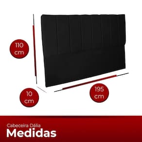 DIMENSÕES DA CABECEIRA Altura total: 122cm com pés, sem os pés 110cm; Largura total: 195cm; Profundidade total: 10cm; Altura dos pés: 12cm; Peso: 8kg;