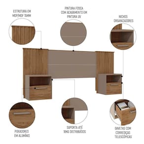 A Cabeceira Casal/King Extensível Com 2 Mesas de Apoio Luck C01 Buriti/Fendi, da Mpozenato é uma ótima opção para quem quer dar um toque de charme e conforto ao Quarto.