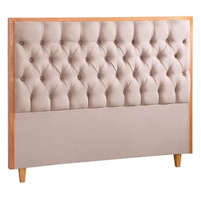 Cabeceira Casal Luxo Sevilha Linho com Detalhe em Madeiras - Branco