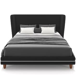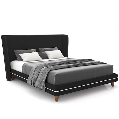 Revestimento em tecido Veludo de alta qualidade na cor Preto, com detalhe na cor Bouclê Cru.