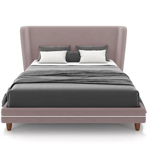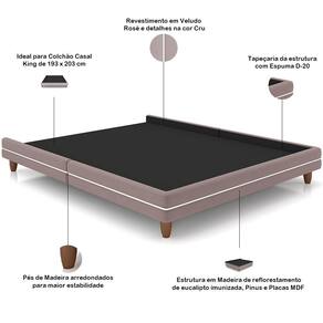 Cabeceira Casal Nilo 195cm Com Cama Pés Madeira Suném P05 Veludo Rosê - Lyam Decor - Blush
