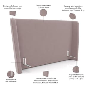 Cabeceira Casal Nilo 195cm Com Cama Pés Madeira Suném P05 Veludo Rosê - Lyam Decor