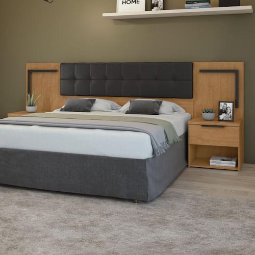 A Cabeceira Calitan reforça o estilo e a personalidade dos dormitórios. Além disso, possui mesas de cabeceira acopladas que dão muito mais praticidade ao dia a dia.