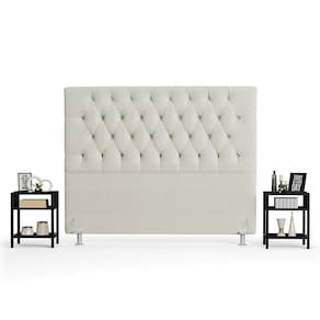 A Cabeceira Casal é uma ótima opção para quem busca conforto, beleza e qualidade. Ela é feita com madeira de Eucalipto, e possui um acabamento em espuma poliuretano e tecido Boucle de ótima qualidade e com detalhe em capitonê que vai deixar seu Quarto ainda mais elegante, acompanha dois pés em PVC, ideais para evitar o direto com o chão. A Cabeceira Painel tem um design moderno e sofisticado, com sistema de fixação prático e , que permite que você a instale sem dificuldade fixando o frame na cabeceira e em seguida a base do no frame. Ah! E ainda acompanha duas Mesas de Cabeceira estilo industrial, que além de ser prática para apoiar seu , abajur ou carteira ela conta com 1 nicho e 1 prateleira para objetos decorativos, livros e o que mais precisar. Com esse kit você vai ter um quarto mais aconchegante, organizado e charmoso.