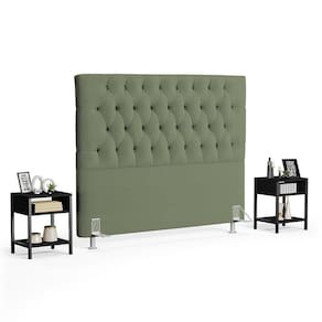 Hora de renovar o seu quarto, deixando mais moderno e prático e a Cabeceira Casal Queen 160cm Cristal Boucle Oliva e 2 Mesas Laterais Plaza LC1 Preto, da Mpozenato é o Kit ideal para você!