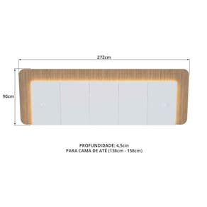 Cabeceira Casal Queen 272cm com Led 3000k e Tomadas 100% Mdf Padrão Planejados Mabel Branco/ Louro Freijó Grann - Cabeceira Casal/Queen com LED e Tomadas