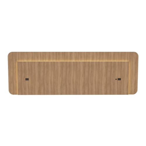 A Cabeceira Mabel Casal/Queen transforma seu quarto com o mesmo padrão de qualidade dos móveis planejados, unindo sofisticação, resistência e funcionalidade. Produzida em 100% MDF com revestimento BP e acabamento em fita de borda PVC 0,045cm, oferece durabilidade e acabamento superior, típicos de móveis de alto padrão. Possui duas tomadas embutidas (uma de cada lado), ideais para carregar celulares e notebooks com praticidade. O grande diferencial está na fita de LED 3000K, que proporciona iluminação indireta aconchegante, deixando o ambiente moderno e confortável. Indicada para camas de até 158 cm (Casal e Queen), combina facilmente com móveis amadeirados, brancos ou cinza, trazendo elegância e praticidade ao quarto. Produto Montado: Sim Ambiente Principal: Quarto Cabeceira Estofada: Não codigo_ean: 7901008600823 Complexidade da Montagem: Média: pode ser montado por mais de uma pessoa e/ou necessite de maior conhecimento para montagem Cor: Louro Freijó Grann Cor do Produto: Louro Freijó Grann Cor Flex: Não Escala de Brilho: Fosco Extensível: Não Fixação Box: Não Fixação na Parede: Sim Itens Inclusos: 1 Cabeceira, Kit Ferragens e Manual de Montagem Largura do Colchão Indicado: 138cm/158cm Linha ou Coleção: Mabel Manual de Montagem e Instalação: https://product-hub-prd.madeiramadeira.com.br/702506434/documents/2ab87bbb-1ab5-478f-8a6c-bcb4245699df3144682657817555350903859.pdf Marca: FD Material Principal: MDF Montagem Flex: Não Necessita Montagem: Sim Origem do Produto: Nacional Peso: 37 kg Possui Baú: Não Possui Espelho: Não Possui Mesa de Cabeceira: Não Possui Pés: Suspenso Possui Vidro: Não Recomendações de Uso, Manutenção e Limpeza: Limpar somente com um pano levemente umedecido. Indicado para ambientes internos Sistema de Montagem: Parafusos, cavilhas e minifix Tipo de Colchão: Casal/Queen