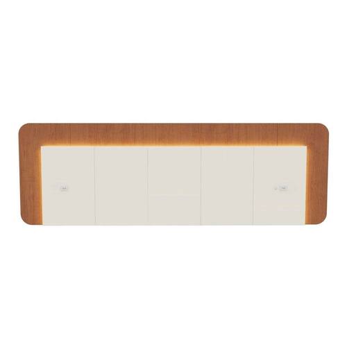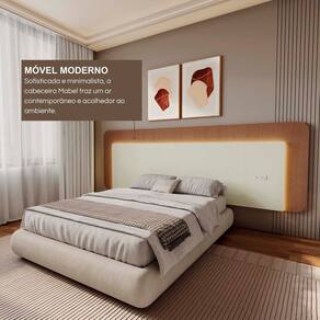 A Cabeceira Mabel Casal/Queen transforma seu quarto com o mesmo padrão de qualidade dos móveis planejados, unindo sofisticação, resistência e funcionalidade. Produzida em 100% MDF com revestimento BP e acabamento em fita de borda PVC 0,045cm, oferece durabilidade e acabamento superior, típicos de móveis de alto padrão. Possui duas tomadas embutidas (uma de cada lado), ideais para carregar celulares e notebooks com praticidade. O grande diferencial está na fita de LED 3000K, que proporciona iluminação indireta aconchegante, deixando o ambiente moderno e confortável. Indicada para camas de até 158 cm (Casal e Queen), combina facilmente com móveis amadeirados, brancos ou cinza, trazendo elegância e praticidade ao quarto. Produto Montado: Sim Ambiente Principal: Quarto Cabeceira Estofada: Não codigo_ean: 7901008600861 Complexidade da Montagem: Média: pode ser montado por mais de uma pessoa e/ou necessite de maior conhecimento para montagem Cor: Off White / Castanho Cor do Produto: Off White / Castanho Cor Flex: Não Escala de Brilho: Fosco Extensível: Não Fixação Box: Não Fixação na Parede: Sim Itens Inclusos: 1 Cabeceira, Kit Ferragens e Manual de Montagem Largura do Colchão Indicado: 138cm/158cm Linha ou Coleção: Mabel Manual de Montagem e Instalação: https://product-hub-prd.madeiramadeira.com.br/840474366/documents/b5f580ab-01fc-4e71-bba8-88565e24f27f3144019657817555235764373.pdf Marca: FD Material Principal: MDF Montagem Flex: Não Necessita Montagem: Sim Origem do Produto: Nacional Peso: 37 kg Possui Baú: Não Possui Espelho: Não Possui Mesa de Cabeceira: Não Possui Pés: Suspenso Possui Vidro: Não Recomendações de Uso, Manutenção e Limpeza: Limpar somente com um pano levemente umedecido. Indicado para ambientes internos Sistema de Montagem: Parafusos, cavilhas e minifix Tipo de Colchão: Casal/Queen