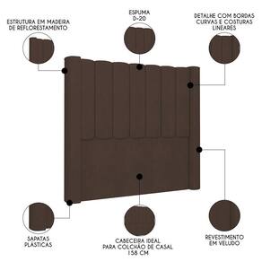 Elemento fundamental para compor a decoração do quarto de casal e, ainda, desempenhar funcionalidade que vai além do estético, a Cabeceira Casal Queen Cama 160cm Claire I02 Veludo Marrom, da Mpozenato, vai te surpreender do começo ao fim.