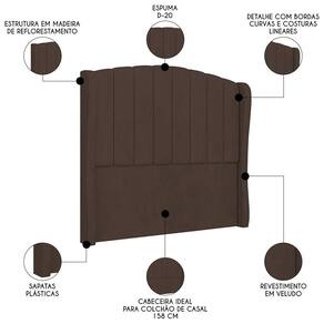 Altura: 128 cm | AssemblyRequired: Sim, sugerimos a contratação do nosso serviço de montagem (para os CEPs em que o serviço está dispon | Color: Marrom | ColorFamily: Marrom | ColorSimple: Marrom | ColorSupplier: Marrom | Cor: Marrom | Largura: 172 cm | Marca: Mpozenato | Material: Madeira de Eucalipto | MaterialFamily: Madeira de Eucalipto | Model: Glenda | OriginCountry: | OriginState: PR | Peso: 19 kg | ProductContents: 1 Cabeceira | ProductHeight: 128 | ProductInstructions: Produto para uso em ambiente interno, nao devendo ficar exposto ao sol, calor e umidade excessivos. | ProductLength: 20 | ProductWarranty: 90 dias após o do produto | ProductWeight: 19 | ProductWidth: 172 | Profundidade: 20 cm | SizeDescription: 128 x 172 x 20 cm | SupplierSimpleName: Cabeceira Casal Queen Cama 160cm Glenda I02 Veludo Marrom - Mpozenato | Tipo de Garantia: Fabricante