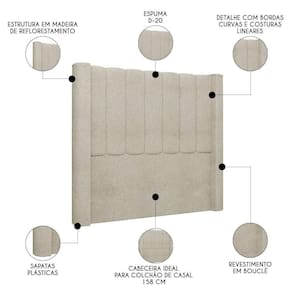 Elemento fundamental para compor a decoração do quarto de casal e, ainda, desempenhar funcionalidade que vai além do estético, a Cabeceira Casal Queen Cama Box 160cm Claire Z04 Boucle Bege, da Mpozenato, vai te surpreender do começo ao fim.