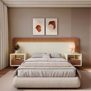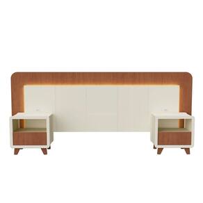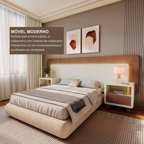 A Cabeceira Mabel Casal/Queen leva para o seu quarto o mesmo padrão de qualidade dos móveis planejados, unindo beleza, resistência e funcionalidade. Produzida em 100% MDF com revestimento BP e acabamento em fita de borda PVC 0,045cm, garante durabilidade e sofisticação, com acabamento superior típico de móveis planejados de alto padrão. O conjunto acompanha 2 mesas de cabeceira com gaveta e nicho, ideais para organizar livros, objetos e apoiar luminárias. Para o dia a dia, conta com duas tomadas embutidas (uma de cada lado), perfeitas para carregar eletrônicos. O diferencial está na fita de LED 3000K, que cria iluminação indireta aconchegante, deixando o quarto moderno e confortável. Indicada para camas de até 158 cm (Casal ou Queen), combina com móveis amadeirados, brancos ou cinza. Produto Montado: Sim Acabamento da Mesa de Cabeceira: Melamínico Altura dos Pés: 11,5 cm Altura Máxima dos Pés: 11.5000 Ambiente Principal: Quarto Cabeceira Estofada: Não codigo_ean: 7901008600984 Complexidade da Montagem: Média: pode ser montado por mais de uma pessoa e/ou necessite de maior conhecimento para montagem Cor: Off White / Castanho Cor do Produto: Off White / Castanho Cor Flex: Não Escala de Brilho: Fosco Escala de Brilho da Mesa de Cabeceira: Fosco Extensível: Não Fixação Box: Não Fixação na Parede: Sim Informações Complementares: Limpar somente com um pano levemente umedecido. Indicado para ambientes internos. Itens Inclusos: 1 Cabeceira, 2 Mesas de Cabeceira, Kit Ferragens e Manual de Montagem Largura do Colchão Indicado: 138cm/158cm Linha ou Coleção: Mabel Manual de Montagem e Instalação: https://product-hub-prd.madeiramadeira.com.br/763657824/documents/cd1cc50a-6109-42e3-83aa-6d41b27043483143945657817555226278.pdf Marca: FD Material da Mesa de Cabeceira: MDF Material dos Pés: MDF Material Principal: MDF Montagem Flex: Não Necessita Montagem: Sim Origem do Produto: Nacional Peso: 67 kg Possui Baú: Não Possui Espelho: Não Possui Mesa de Cabeceira: 02 Possui Pés: 08 Possui Rodízio: Não Possui Possui Vidro: Não Recomendações de Uso, Manutenção e Limpeza: Limpar somente com um pano levemente umedecido. Indicado para ambientes internos Sistema de Montagem: Parafusos, cavilhas e minifix Tipo de Colchão: Casal/Queen
