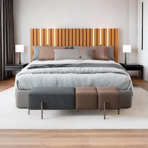 Transforme seu quarto com a elegância desta cabeceira ripada. Com um design moderno e acabamento de alta qualidade, ela adiciona um toque de sofisticação e estilo ao ambiente.
