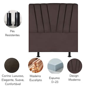 Fabricada com materiais de alta qualidade, como madeira eucalipto e revestimento em Corino, esta cabeceira é durável e resistente, garantindo não apenas estilo, mas também funcionalidade para o seu ambiente.