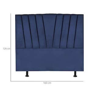 Cabeceira Casal Queen Size Cama Estofada 160 Cm Lile Suede Azul Marinho