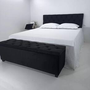 Cabeceira Casal Recamier Com Baú Capitonê - Fabrica De Tudo - Preto