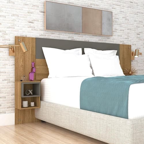 Produzido em MDP de 15mm, a Cabeceira conta com 2 mesas de cabeceiras acopladas