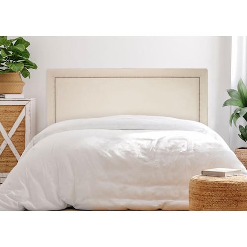 Cabeceira Casal Reta Luxo 140x60 Suede Off White - Tachas Prata