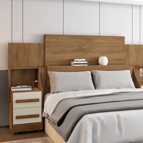 A cabeceira tem um design incrível para decorar o seu quarto.